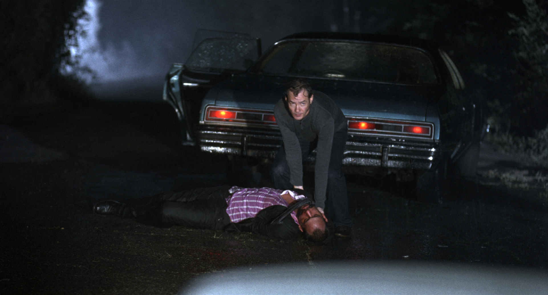 Una pareja viajando en el medio de la noche se ve, accidentalmente, envuelta en un crimen.